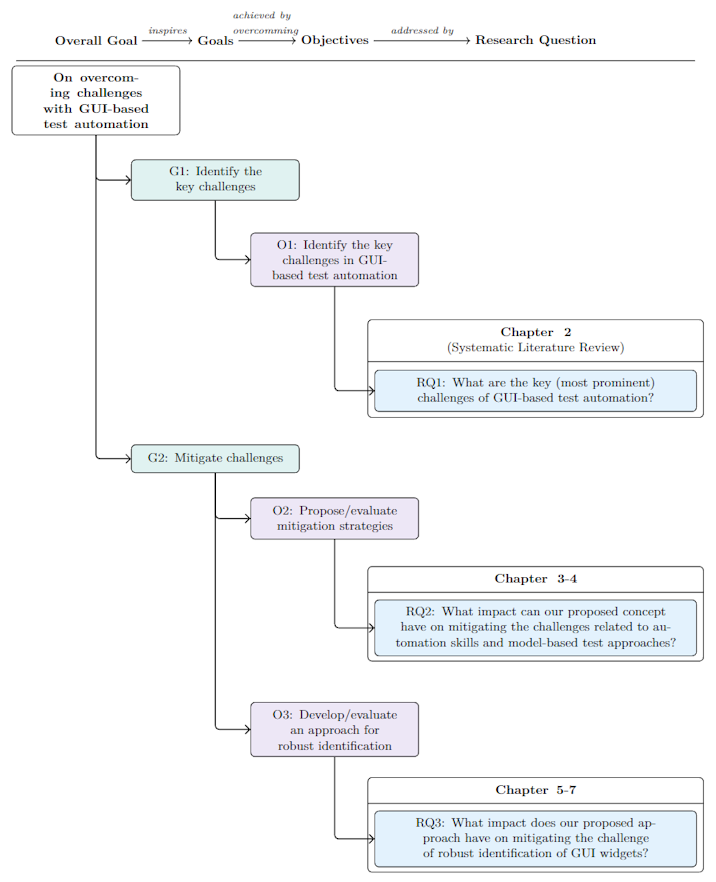 Our first contribution is mapping the challenges in GUI-based test automation reported in academic literature. We mapped the main challenges (i.e., most reported) on a timeline and classified them from essential to accidental. This classification is valuable since we can focus our research on the main challenges today that we are more likely to mitigate using a technical solution (i.e., accidental). Our second contribution is several novel approaches that explore new concepts or advance state-of-the-art techniques to mitigate some of the main accidental challenges.